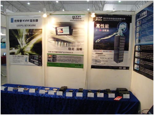 工作人員介紹相關(guān)產(chǎn)品,本次優(yōu)特普共在展會(huì)現(xiàn)場(chǎng)展示了安防監(jiān)控系統(tǒng)產(chǎn)品的演示效果和高清VGA延長系列產(chǎn)品的演示效果。