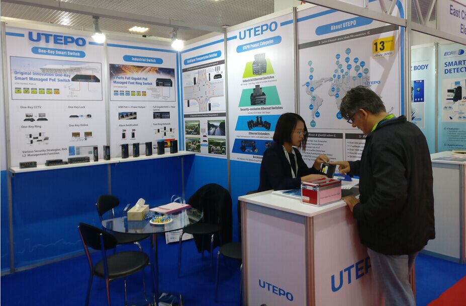 展會第一天,優(yōu)特普商用交換機(jī)、工業(yè)環(huán)網(wǎng)交換機(jī)、PoE交換機(jī)等引起了現(xiàn)場觀眾的濃厚興趣,尤其受到當(dāng)?shù)刂匾?jīng)銷商的歡迎。由于土耳其靠近歐洲,IP監(jiān)控市場份額大于模擬產(chǎn)品,因此,PoE交換機(jī)更是受到了當(dāng)?shù)乜蛻舻臍g迎與關(guān)注。