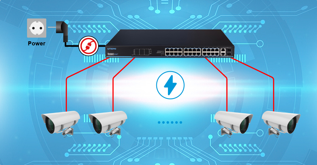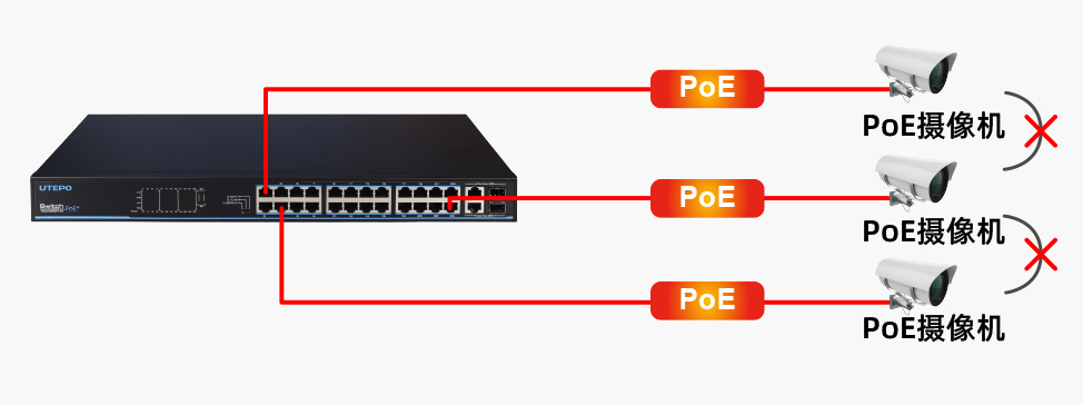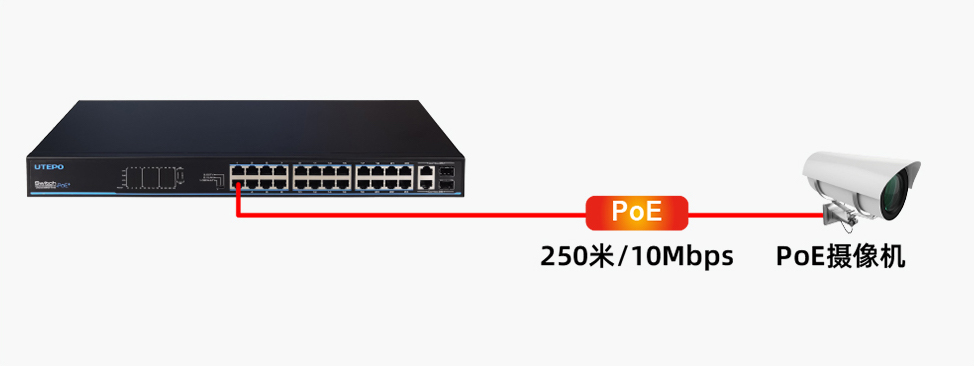 CCTV:下聯(lián)端口速率降為10Mbps,最遠傳輸距離延長至250米。此模式下,產(chǎn)品支持PoE看門狗功能。